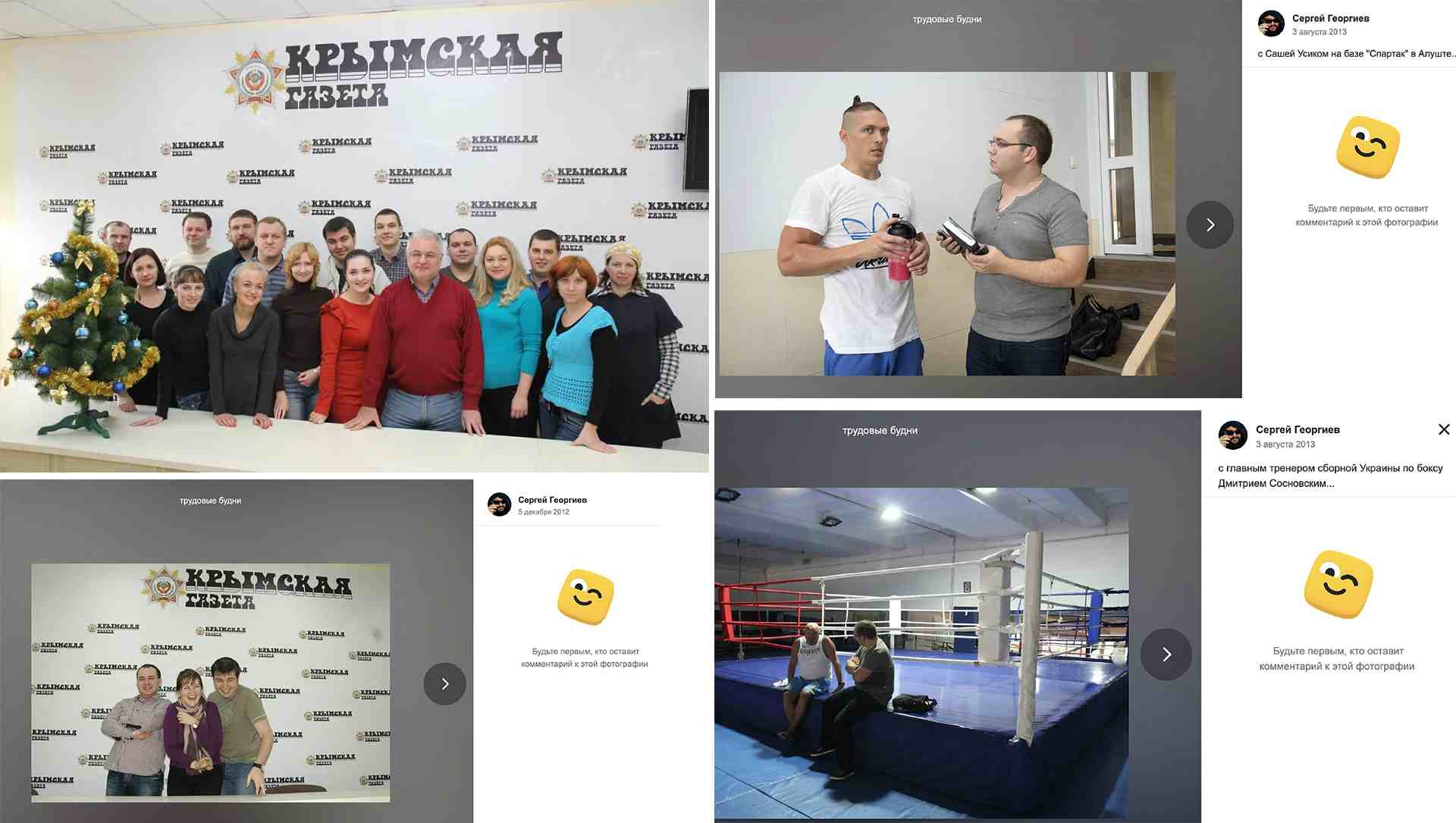 Як можна дізнатися з ймовірної сторінки «омбудсмена», до окупації свого рідного півострова Сергій Георгієв працював у «Кримській газеті»: спілкувався з представниками та діячами спорту України, наприклад, зі всесвітньо відомим боксером і також тодішнім мешканцем Криму Олександром Усиком та головним тренером збірної України з боксу Дмитром Сосновським.