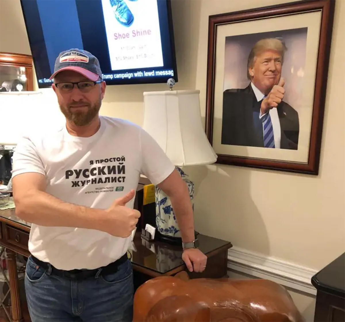 Потім його план влаштувати мітинг перед Білим домом, щоб відзначити запуск вебсайту, був зірваний, оскільки він надіслав свій запит на дозвіл проводити захід не до того офісу. Того ж тижня він з’явився у кав’ярні в центрі Вашингтона для свого першого інтерв’ю з американським репортером, одягнений у білу футболку з фотографією міністра закордонних справ Лаврова та написом «дебіли бл**ь». Тобто недарма його називали в американських виданнях «провокатором».