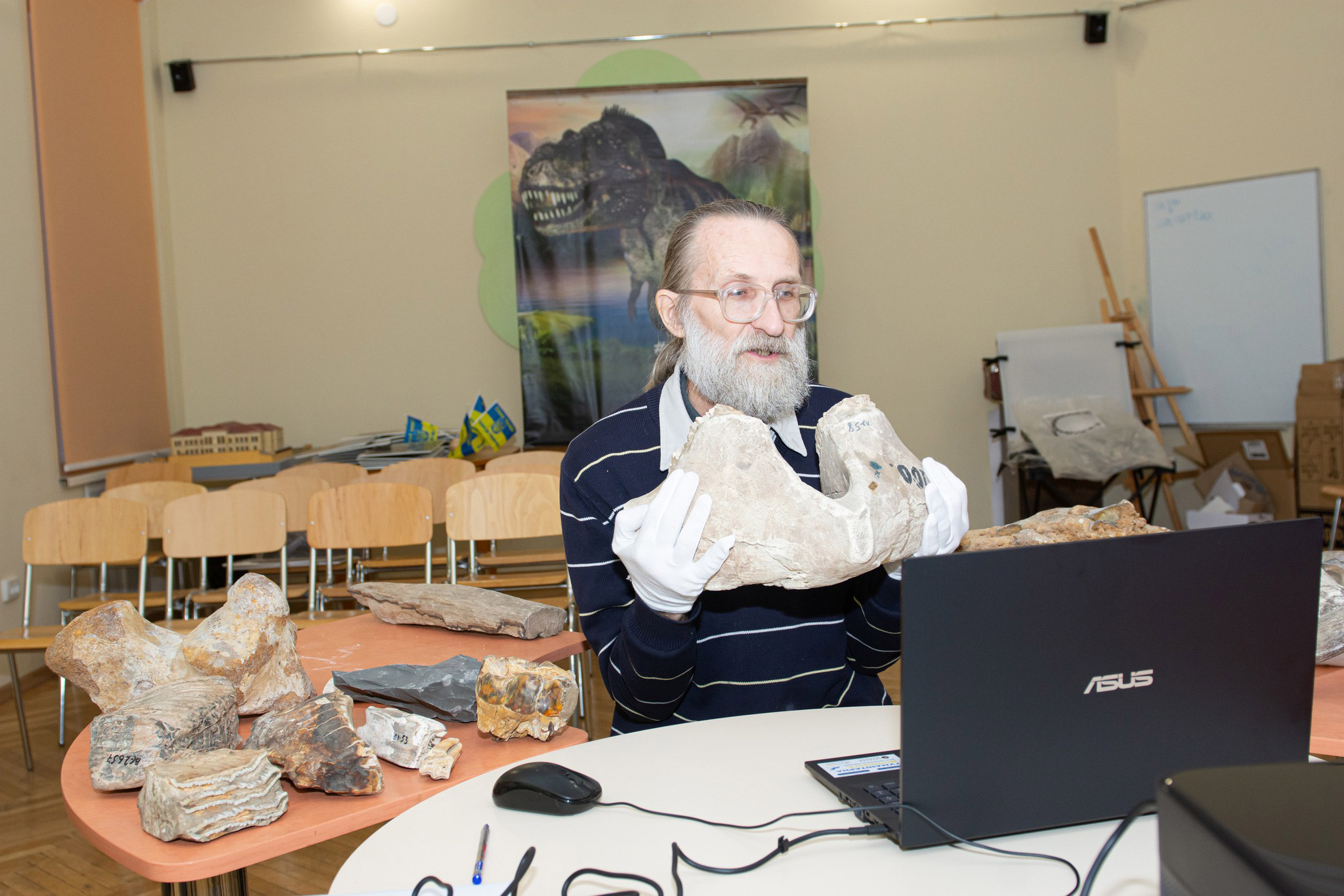 Завідувач науково-природничого відділу музею Михайло Підгайний веде онлайн-заняття для школярів. Фото: Херсонський обласний краєзнавчий музей / Facebook