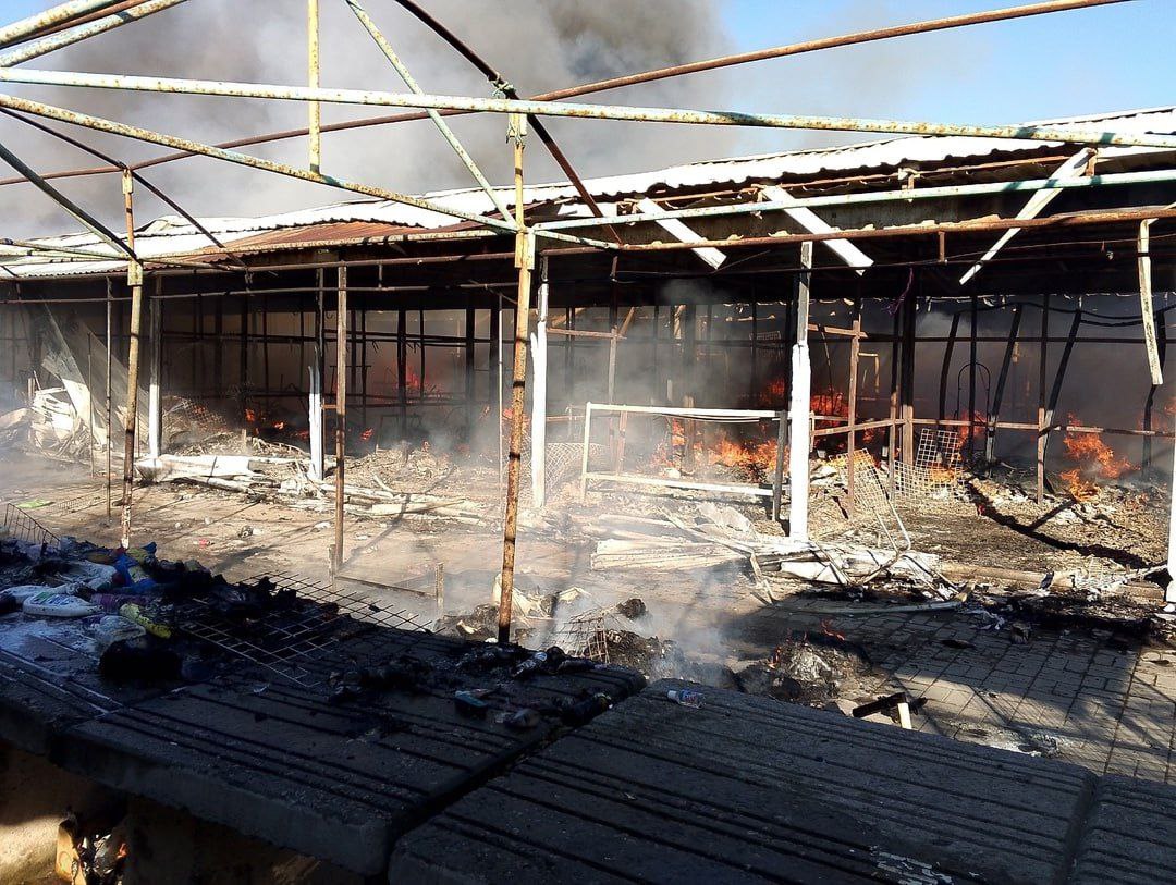 Рано-вранці 18 квітня ряди біля входу на ринок з боку автостанції охопив вогонь. Як написало згодом окупаційне управління МНС РФ у Херсонській області, «щільна забудова і високе пожежне навантаження сприяли швидкому розповсюдженню полум’я на торгівельні ряди».