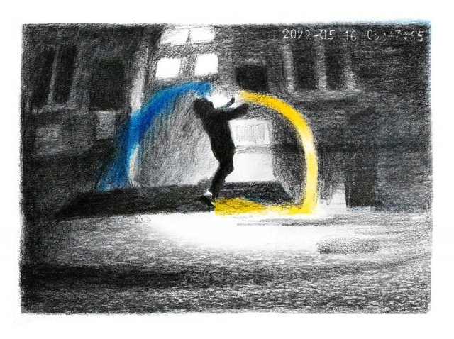"Там зі мною проводили "бесіду", — розповідає Левченко. — Ставили багато питань по виставах. Для них сама назва "Слава героям!" — вже свідчення, що я ворог. Я годинами переповідав їм зміст вистав. Ще питали, чи я брав участь у мітингах, шукали щось у соцмережах — і знайшли. Ще до повномасштабної війни я запостив малюнок, де закохана пара дивиться на палаючий Кремль. Вони вчепились у це — екстремізм, тероризм. Казали, або зізнаєшся, або розстріляємо".