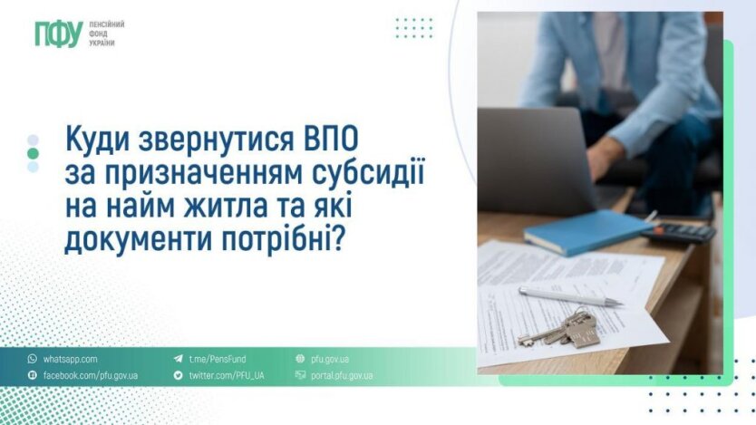 Внутрішньо переміщені особи, які орендують житло, відтепер можуть претендувати на субсидію на його найм, звернувшись до Пенсійного фонду України разом із наймодавцем. Подати документи можна як офлайн у сервісних центрах Пенсійного фонду або ЦНАПах, так і онлайн — через вебпортал електронних послуг ПФУ.