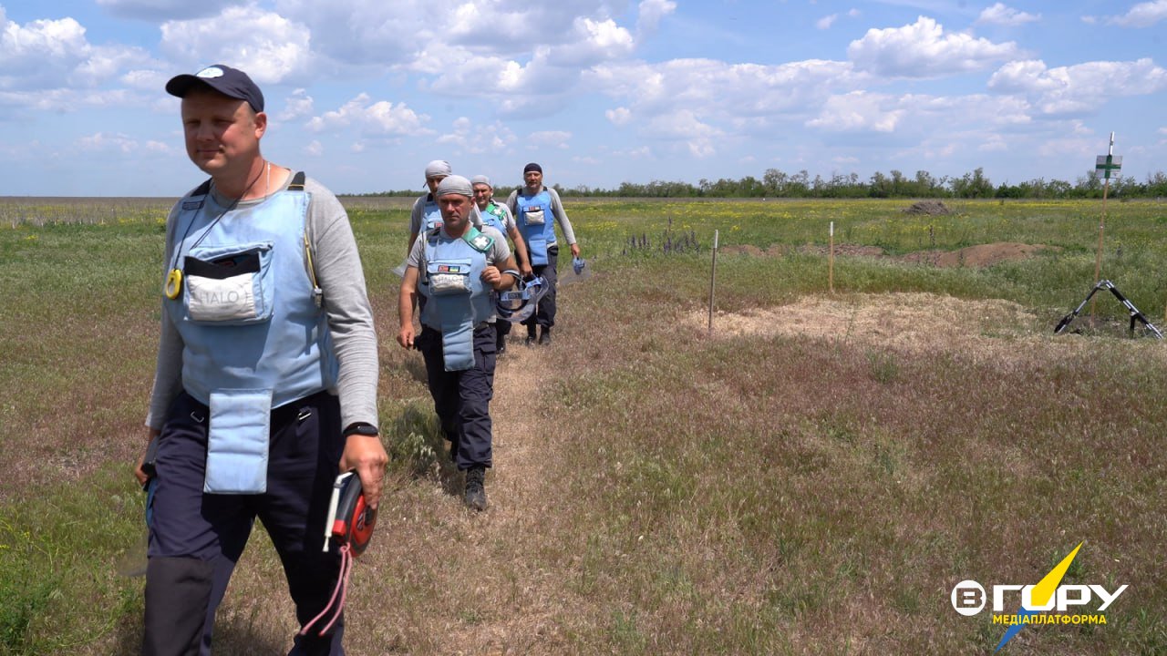 У перші дні, коли зайшли на свої ділянки на Херсонщині, вони працювали вручну й продивлялися кожен сантиметр землі, бо існувала велика загроза натрапити на протипіхотні міни, встановлені на розтяжках. Застосовували спеціальні щупи для пошуку розтяжок.