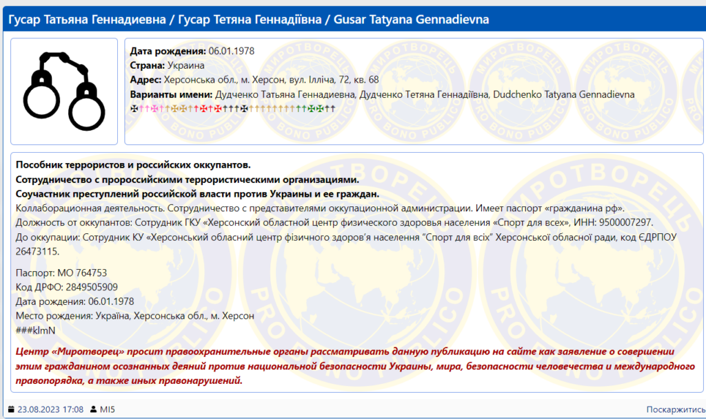 Дружина Ротоноса – Тетяна Гусар – також працює на окупантів: під керівництвом чоловіка. Раніше працювала у спортивній школі «Кристал» та зокрема – в одній із комісій під час виборів Президента 2019 року.