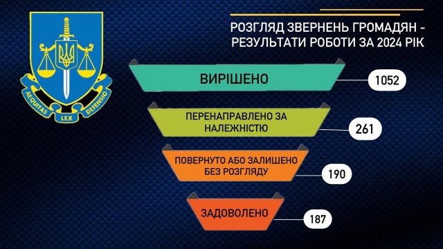 Найбільше звернень стосувалося питань досудового розслідування — 630, з них задоволено 140.