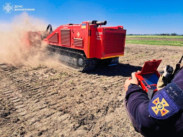 Зокрема, девʼять вінницьких надзвичайників з групи механізованого розмінування та спеціальних вибухових робіт, за допомогою двох роботизованих систем, «проходять» потенційно небезпечні ділянки землі. Все задля того, аби якнайшвидше очистити українську землю від боєприпасів.