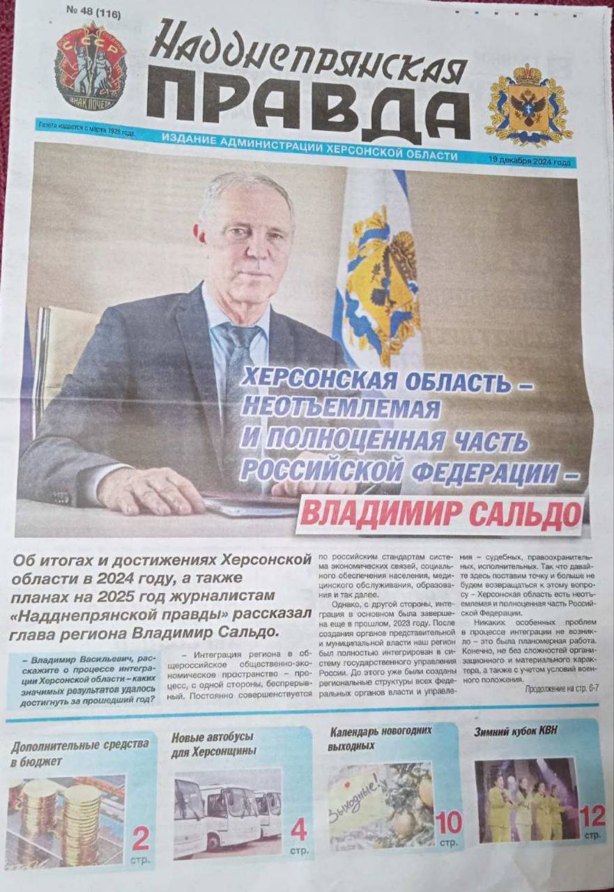 Барбашов також вдавано попереживав, що «на Заході відсутня свобода слова» і «західні ЗМІ знаходяться під контролем властей і крупних корпорацій». Але навряд чи десь у світі можна знайти настільки підконтрольну владі, нею зацьковану і куплену «журналістику», крім як у Росії. Це підтверджують і чергові випуски окупаційних «газет», які були надруковані напередодні Нового року, а зараз, коли на окупованій території закінчились тривалі канікули, розповсюджуються у населених пунктах лівобережжя.