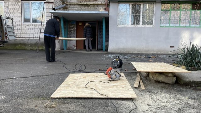 "Це було ввечері десь, години в чотири, початок п'ятої. Мені подзвонив директор школи, а я тут чергую, і я учора тільки вийшов зі зміни. А потім вранці він подзвонив, каже, що дірка у двох квартирах, виходить, що наскрізь", — каже чоловік.