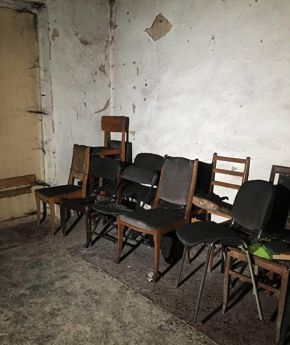 Приміщення “Украгропромпроєкту”. Фото: Данило“Цю жінку, яка назвала себе волонтеркою, прив’язували до стільця стяжками й били струмом. З неї більше знущались. Її першого дня побили, потім, наступного дня, знов, потім ще. Вона плакала, їй було дуже важко говорити. Її моральний та фізичний стан був дуже-дуже поганий. Коли її били струмом, вона собі відірвала ніготь від болю”, – розповідає Данило.