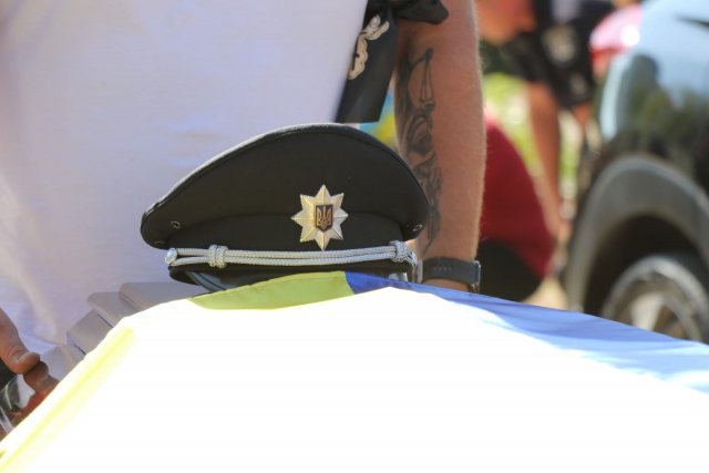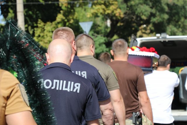 Поліцейські Херсонщині провели в останню путь свого колегу Андрія Тарчинського, загиблого внаслідок російського обстрілу