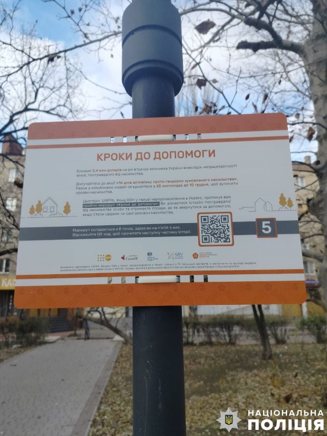 Також на алеї були встановлені інформаційні таблички з QR-кодами. Херсонці переходили за ними та дізнавалися всю необхідну інформацію про алгоритм дій для постраждалих від домашнього насильства, механізми протидії цьому явищу, реальні історії людей, які пережили домашнє насильство, інформацію про дані щодо насильства в Україні. Завдяки такому заходу люди зрозуміли, що допомога завжди поруч, а звернення до поліції або інших профільних служб – це простий крок.