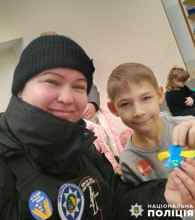 Завершився захід для працівників сектору протидії домашньому насильству приємно та неочікувано. Вони завітали у центр, де дітки робили обереги нашим захисникам, аби розповісти малечі про їх права, наслідки насильства та булінгу. Наприкінці зустрічі до поліцейських підійшов хлопчик та зі словами «Хай він оберігає вашу команду» подарував янгола, якого зробив власноруч із кольорового паперу. Поліцейські подякували дитині та прилаштували оберіг як символ добра, віри та надії на Перемогу до службового автомобіля.