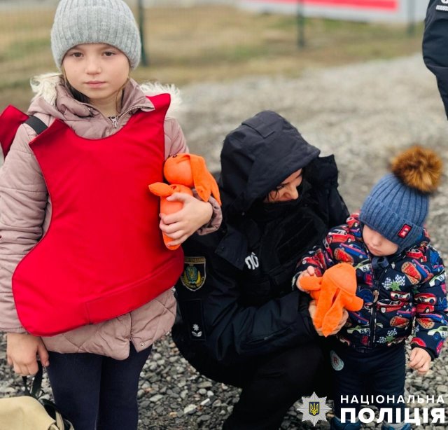 Поліцейські вивезли дві родини з шістьма дітьми з небезпечних прифронтових населених пунктів Херсонської громади