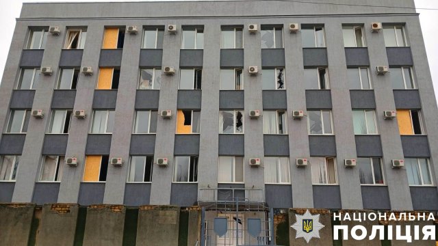 Вночі надпотужні вибухи пролунали в Херсоні. російські військові вдарили по адмінбудівлі поліції, майже зруйнувавши її. Двоє херсонських поліцейських отримали контузії. Від вибухової хвилі у розташованих навколо багатоповерхових будинках, будівлях школи та суду пошкоджено вікна.