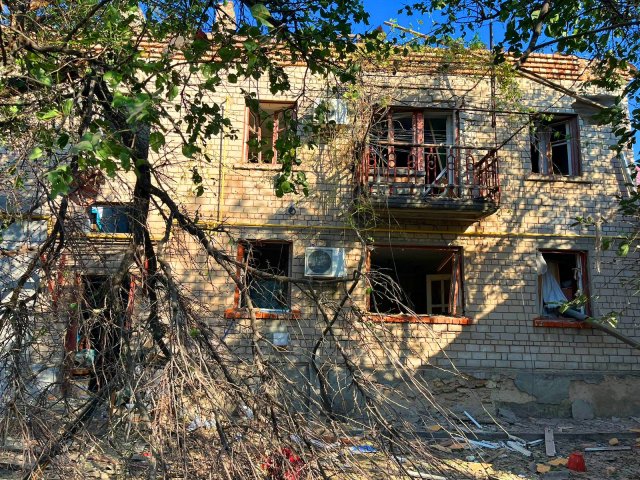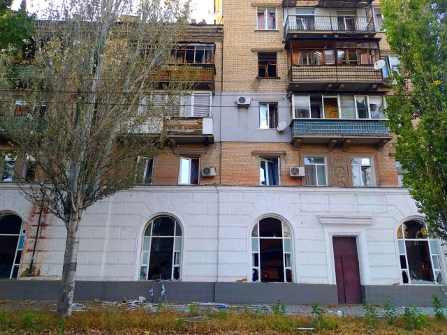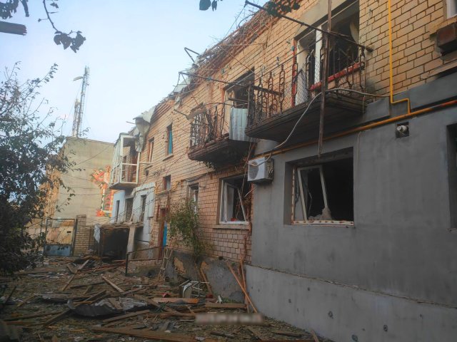 У центрі міста артилерійським обстрілом пошкоджено приватні та багатоповерхові будинки, поранено 5 місцевих жителів: чоловіків віком 81, 64, 50, 54 роки та 41-річну жінку.