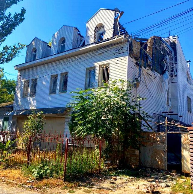 Унаслідок російського обстрілу у Херсоні знищено будівлю колишнього будинку Товариства взаємного кредиту.