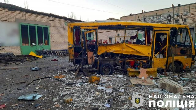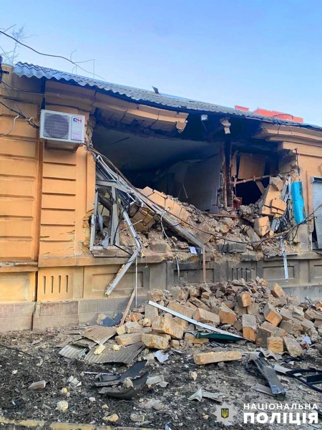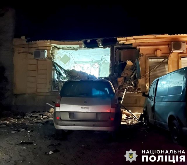 На житлові квартали Берислава ворог скинув боєприпаси з дронів. Внаслідок вибухів пошкоджено службовий автомобіль поліції та поранено 3 цивільних чоловіків віком 44, 55 та 73 роки.