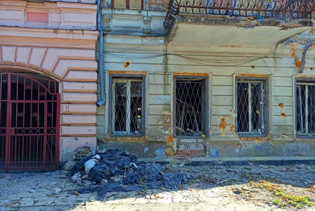 Унаслідок російського обстрілу у Херсоні знищено будівлю колишнього будинку Товариства взаємного кредиту.