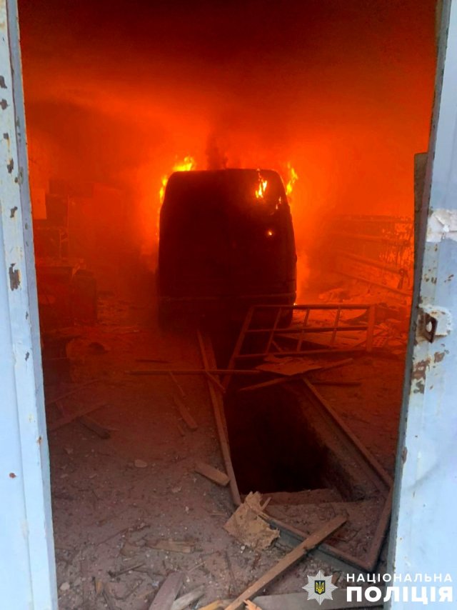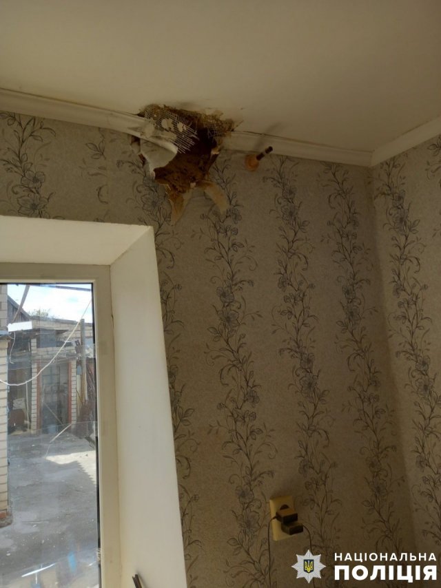Військові рф скинули боєприпас із дрона на житловий квартал Берислава. Внаслідок вибуху травмовано 62-річного чоловіка, у нього контузія та поранення рук. Місто перебувало під цілодобовою атакою ворожих безпілотників, у результаті вибухів пошкоджено будівлю магазину та гараж, де згорів службовий автомобіль поліції.