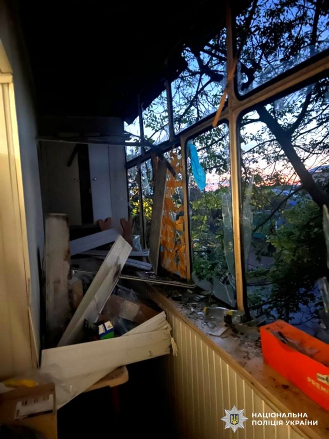 Російські удари спричинили пошкодження багатоквартирного і трьох приватних будинків, службового автомобіля поліції та двох цивільних автівок.
