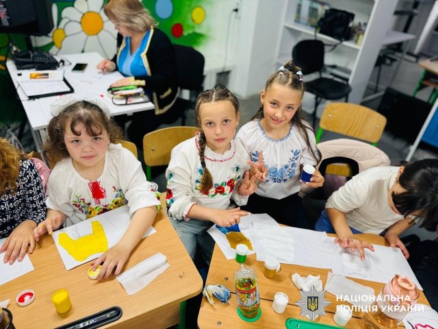 Діти брали участь у творчих майстер-класах, малювали, розфарбовували символи національної ідентичності, дізнавалися про значення вишиванки, спілкувалися з поліцейськими, ділилися враженнями й на певний час забували про те, що за вікнами – війна. Правоохоронці також нагадали учням правила поводження з підозрілими предметами та мінної безпеки.