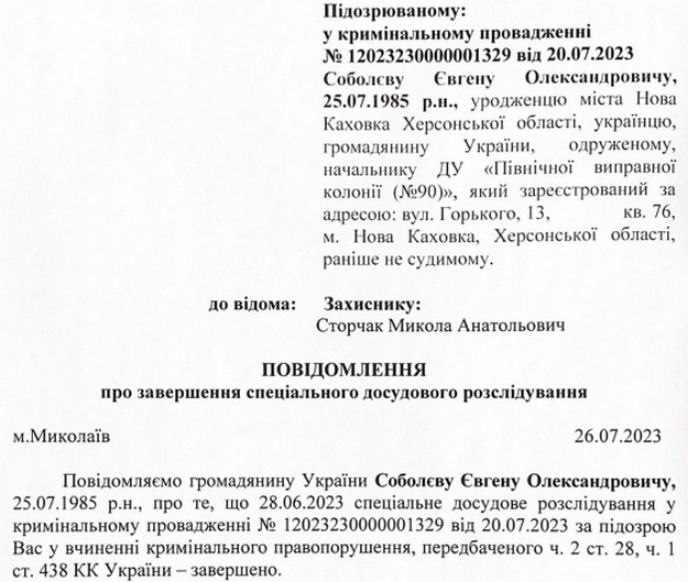 Поліція завершила чергове розслідування щодо херсонського тюремника Соболєва