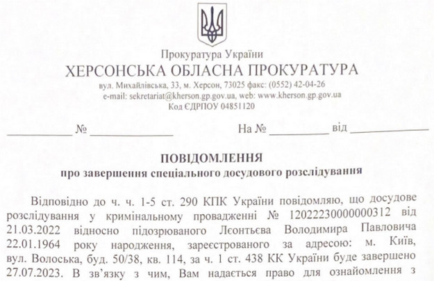 Поліція завершила розслідування щодо гауляйтера Нової Каховки