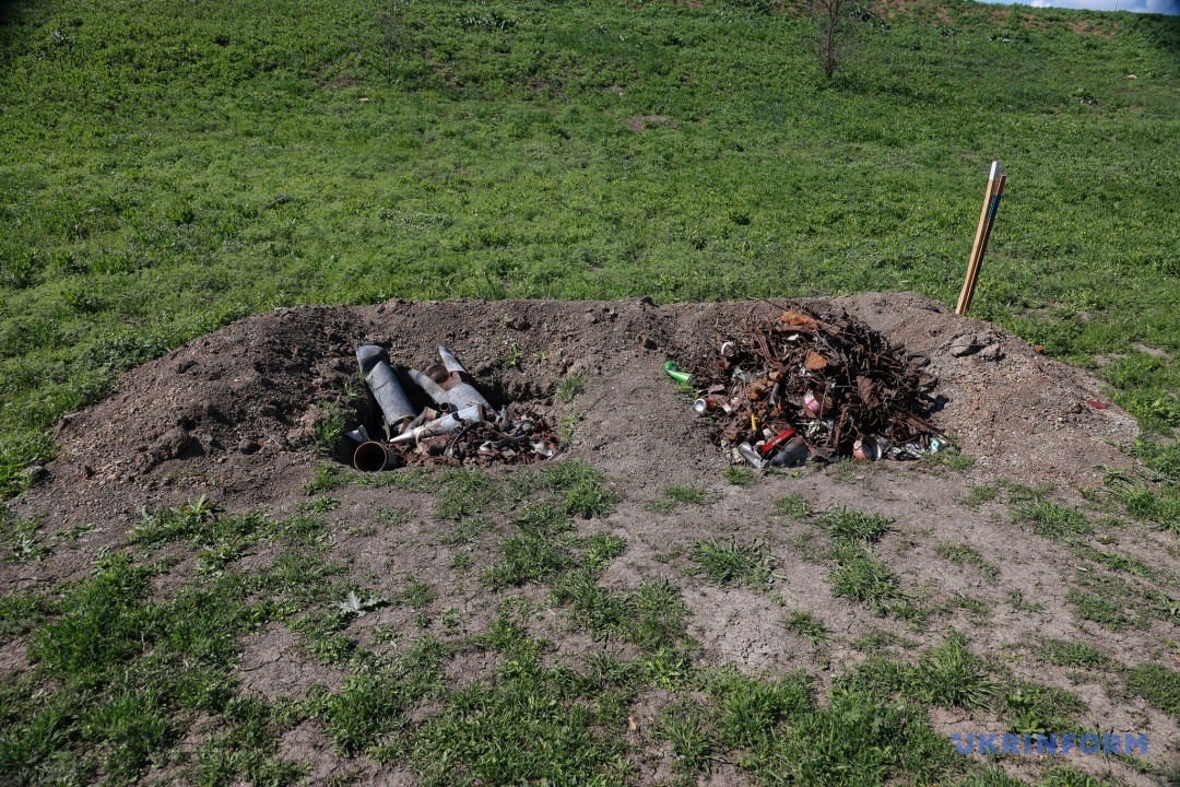 Валерія підводить нас до місця за пагорбом, де у виритих ямах зберігаються знахідки. В одній – небезпечні і вже знешкоджені, в іншій – просто металеве сміття. Останнього – в рази більше. Жінка каже, що демінери перевіряють будь-який сигнал маталодетектора.