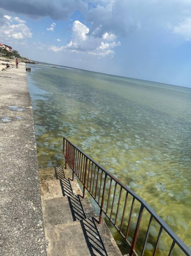 Біля всіх входів на Генічеський центральний міський пляж окупаційна влада встановила знаки: «Купання заборонено» . Але особливо зараз там і не покупатись - море біля берега схоже на кисіль. Через нашестя медуз, звісно.