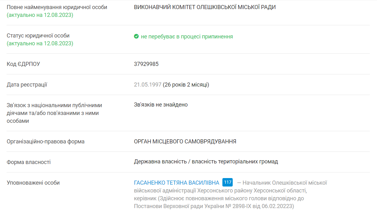Пікантність ситуації полягає в тому, що і ту, і іншу структуру — Виконавчий комітет Олешківської міської ради та Олешківську МВА очолює одна і та сама людина — Тетяна Гасаненко.