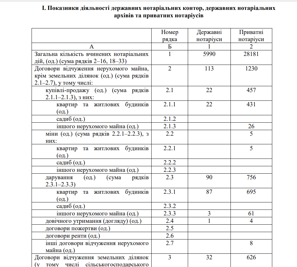 Скрін зі звіту про роботу державних, приватних нотаріусів Міністерства юстиції України в Херсонській області за 2024 рік