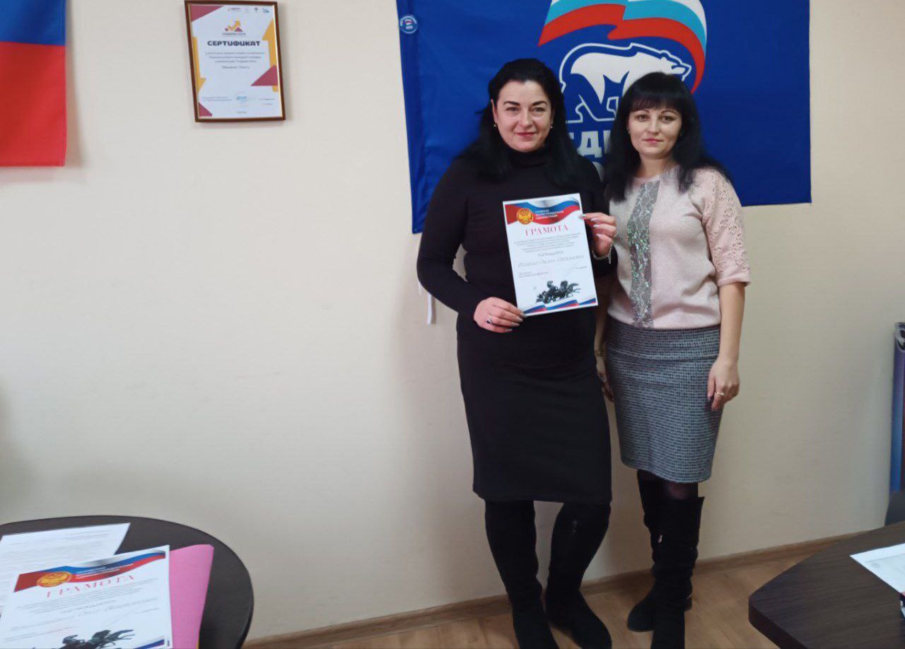 Колаборантки Ольга Мащенко і Оксана Осіння. Фото з окупаційного паблікаУ селі Роздольне Каховської громади грамоти від окупантів отримали: Хлистова Світлана Леонідівна, ексвчителька української мови і літератури місцевої школи, яку росіяни призначили її «директоркою», Горошко Олена, яка працювала в місцевому аграрному підприємстві, а зараз видає на пошті російську матеріальну «допомогу» і пенсії в рублях.