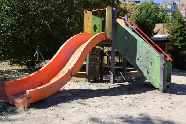 Також внаслідок обстрілу пошкоджений ігровий майданчик, зупинка громадського транспорту, магазин та автівки, які були припарковані біля будинку.suspilne.media