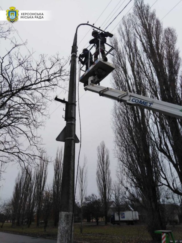 Працівниками КП «Херсонміськсвітло» учора, 07 грудня, були проведені роботи з відновлення повітряних ліній зовнішнього освітлення на 3-х об’єктах, які були пошкоджені унаслідок ворожих обстрілів на просп. Національної Гвардії України та вул. Джона Говарда.Про це повідомляє пресслужба ХМВА.