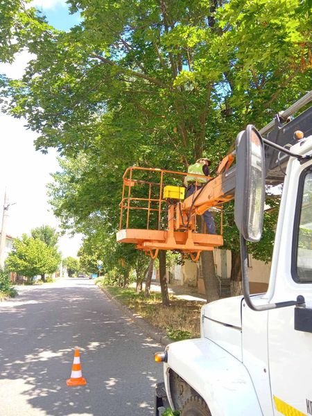 Працівники КП "Херсонміськсвітло" обрізали гілки дерев для покращення огляду дорожніх знаків