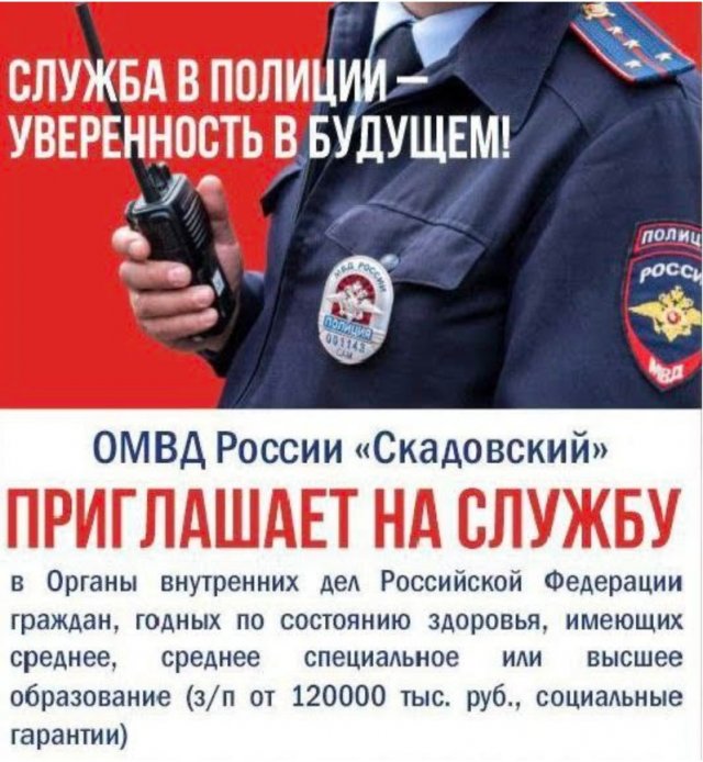 У самій окупаційній адміністрації також не вистачає працівників-лишаються неукомплектованими цілі відділи. Зокрема, начальників і спеціалістів немає у відділах майнових відносин, архітектури і містобудування, муніципального контролю, культури і туризму, благоустрою, транспорту і дорожнього господарства, юридичному, організаційному і архівному, зв’язків з громадськістю і ЗМІ, кадрів, бухгалтерського обліку і звітності, праці і соціального захисту, інформаційних технологій і цифрової трансформації, економіки, інвестицій, розвитку підприємницької діяльності та діловодства. Окупаційний відділ МВС РФ «Скадовський» пропонує громадянам приміряти російську поліцейську форму. Заманюють зарплатою «від 120000 рублів» і «соціальними гарантіями».В окупованому Скадовську також шукають для роботи водія категорії О, секретаря, маляра-штукатура, теслю і зварника... Більшість повідомлень про вакансії висять на окупаційних ресурсах місяцями, і ярмарки їх закрити навряд чи допоможуть.