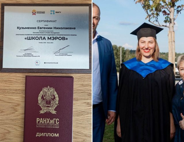 Тепер на додачу до диплому масажистки Російська академія народного господарства і державної служби при президенті Російської Федерації видала їй ще й диплом «мера».«Другу вищу освіту отримала, - збрехала зрадниця у соцмережі, - але найголовніше, що отримала друзів, однодумців, наставників з усіх регіонів нашої Великої країни!» Причому отримала вона цю «освіту», як зізналась, всього лише за 500 навчальних годин.
