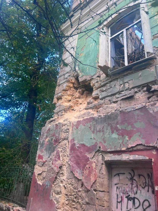 У центральній частині Херсона пошкоджено церву, навчальні заклади, дитячий садочок, магазини та багатоквартирні будинки.