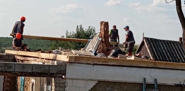 У селі Давидів Брід Великоолександрівської територіальної громади Бериславського району Херсонської області працюють 11 прикарпатці. Наразі вони відновлюють два помешкання.