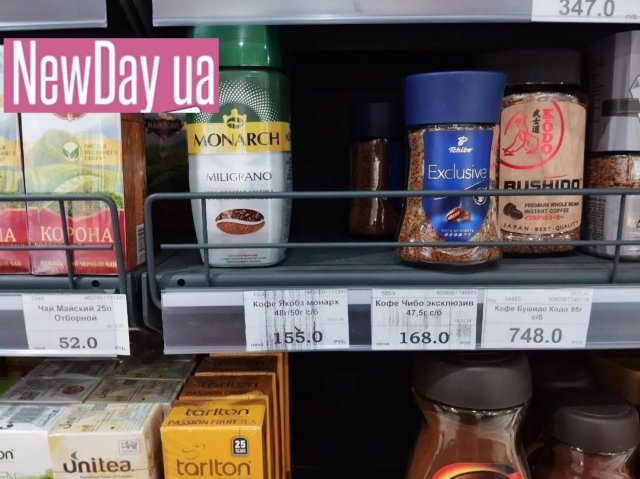Скільки коштують продукти до сніданку на лівобережжі? Наприклад, найпопулярніші: чай, кава, солодощі? А чи взагалі вони їстівні? Наші земляки, які залишились в окупації, кажуть, що ні.Смак є хіба що у кондитерських виробів, завезених з тимчасово окупованого Криму. Щодо ціни - читайте далі. Найдешевша суміш, яку росіяни називають чаєм «Принцеса Нурі», в окупованій Каховці коштує 71 рубль за 100-грамову пачку. Про це повідомляє у Телеграм окупаційна адміністрація.