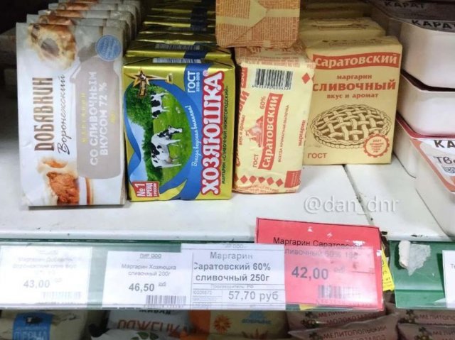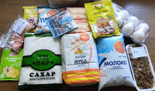 Оскільки набір продуктів і ціни на них у магазинах окупованих Донецька і Генічеська майже ідентичні, їх «розбирання» можуть бути цікавими і для читачів Херсонщини.Пекти паску пропагандисти вирішили за рецептом з сайту RussianFood.com, у якому для випікання 12 порцій потрібно 0,5 л молока, 300 г маргарину, 6 яєць, 2 склянки цукру, 11 грамів сухих активних дріжджів або ЗО грамів пресованих, 9 склянок борошна, 0,5 чайної ложки солі, 2 грама ваніліну, 150 грамів родзинок.