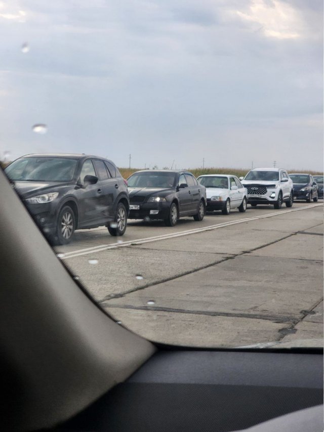 Після наказу окупаційного генерала оглядати всі машини «від даху до коліс» черги і виникли. «Раніше машини заїжджали у два ряди і військові перевіряли їх у темпі вальсу, - написав невідомий. - Тепер на пост заїжджає лише одна машина. У результаті цього нововведення вранці з боку Арабатської Стрілки виникла багатокілометрова черга». Чи справжня це причина, не знаємо, але на правду дуже схоже.