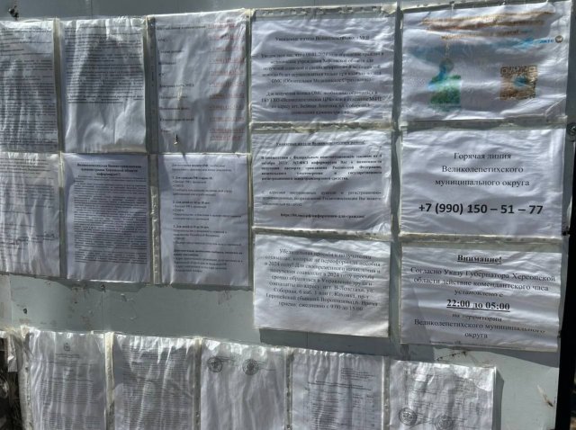 В окупованій Великій Лепетисі, яку пропагандисти показали наступною, збереглась реклама українського інтернет-провайдера і пам’ятнику Т.П Шевченку. З «нового» - стенд з інформацією від окупаційної адміністрації, реклама окупаційного батальйону імені В.П. Маргелова і прапор окупантів. «Три моменти, які кидаються у вічі зразу - прапори Росії, що дуже здорово, пам’ятники ніхто не зносить, і дороги, які вимагають капітального ремонту», - уточнили пропагандисти.
