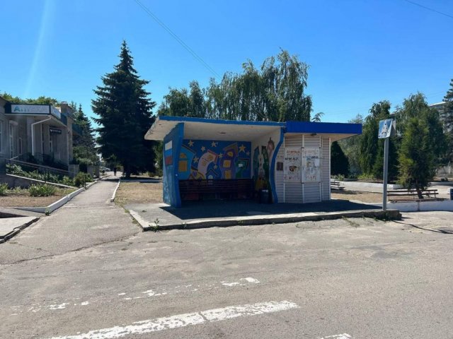 З останніх показали лише кілька легковиків і зерновоз з російськими номерами (судячи з коду регіону, з окупованої Луганщини). Пішоходів на вулицях не видно зовсім. Так само не можна визначити, чи працює магазин, на якому, до речі, збереглась реклама українського (!) мобільного оператора.