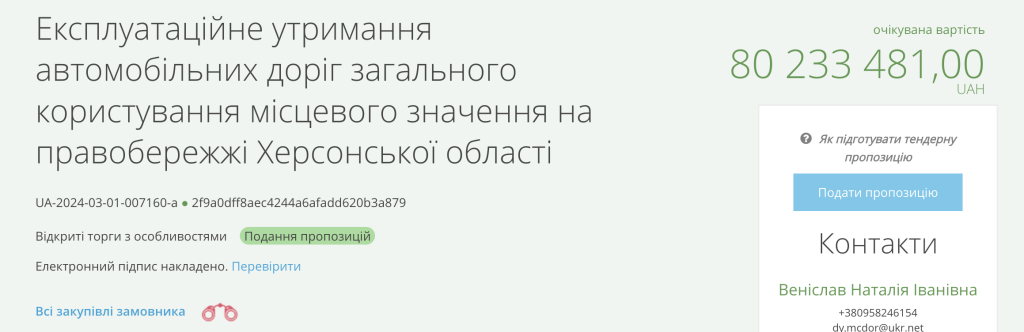 Наразі триває процес подання пропозицій. Підрядника обиратимуть вже 12 березня цього року.