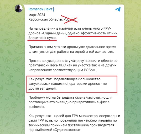 Про успіхи українських дроноводів пишут навіть ворожі телеграм-канали.