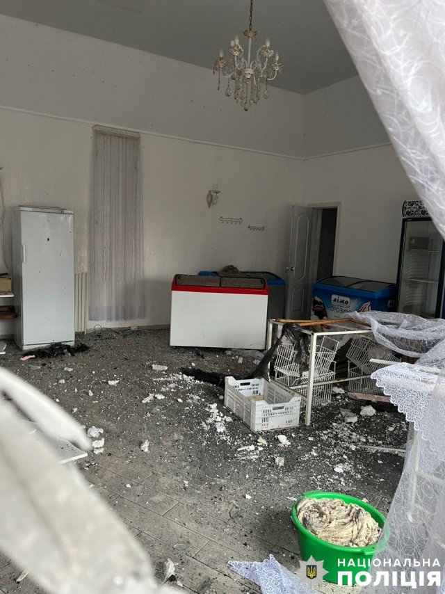 Поліція зафіксувала пошкодження 28 об’єктів: багатоквартирного та 21 приватного будинків, чотирьох автомобілів, кафе та кіоску.У Дніпровському районі Херсона внаслідок удару дроном постраждало подружжя. У 75-річної жінки та 76-річного чоловіка діагностували вибухові травми, контузії й уламкові поранення.