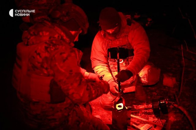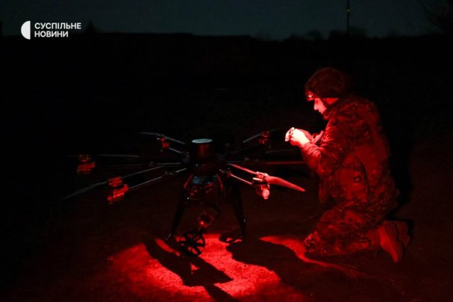 Тим часом "Кажан" повертається на точку злету. Хлопці повторюють процедуру: встановлюють батареї, вішають вибухівку і бомбер відправляється на нову місію."Буває, швидко відпрацюєш — і назад. А буває цілу ніч борешся не тільки з противником, а і з погодою, РЕБами, ще якимись перешкодами. Ну, мінімум сьогодні ми виконали: три скиди по визначених цілях. Плюс суміжники додали їм з артилерії та скидами з Мавіка", — підсумовує роботу "Катана".