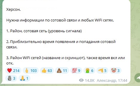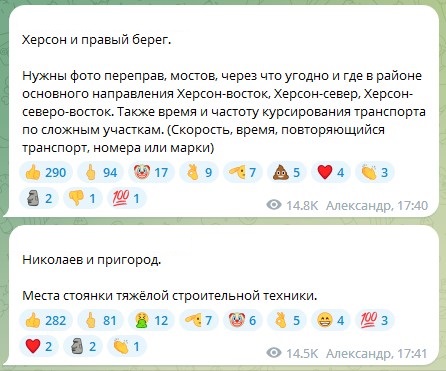 Також збираються дані про місцезнаходження будівельної техніки, мобільні мережі та точки Wi-Fi. Таким чином, варто очікувати нових артилерійських ударів по скученню людей. Чи ведеться робота правоохоронних органів та органів кібербезпеки щодо подібних Telegram-каналів, наразі невідомо.