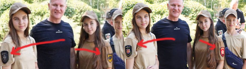 Звичайно, російські окупанти не втрачають найменшої нагоди звинуватити українців у правому радикалізмі. Так, у серпні на пропагандистському ресурсі «Запорожский вестник» було розміщено новину про те, що на Запоріжжі нібито було проведено захід, де дітей вчили поводитися зі зброєю, і куди учасники прийшли у формі зі свастиками «та шевронами нацистських підрозділів».В якості ілюстрації було розміщене фото, на якому секретар Запорізької міської ради Анатолій Куртєв стоїть з дівчатками, що носять нарукавні патчі з символікою «Азова» і з мальтійським хрестом на чорному тлі. У «новині» стверджується, що це символіка підрозділу «Люфтваффе» української армії. Насправді ж це звичайний фотомонтаж. У цьому легко впевнитися, якщо перейти на сторінку Куртєва у Телеграм і подивитися на оригінал цього фото. У дівчат, які брали участь в Міжнародному фестивалі «Запорозький Спас», на футболках патчі з гербом Запорізької області та з символікою дитячого патріотичного руху.